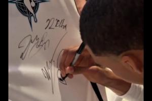 约基奇幽默要求文班亚马在自己的球衣上签名并画一个外星人,文班照做。