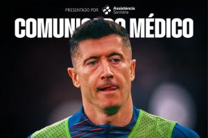 一线队球员罗伯特·莱万多夫斯基在昨天对阵比利亚雷亚尔的比赛中受到撞击。今天进行的检查结果显示,其左眼眶内侧骨折。