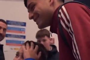 见到偶像太激动与佩德里见面时,一名小球迷当场哭崩不能自已